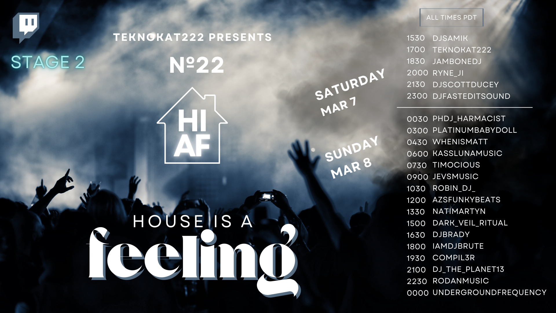 Teaming up with some of the biggest DJs on Twitch, Matt supported the B side! House is a feeling lead by the incredible teknokat222 a good freind of the community and the twitch DJ scene!