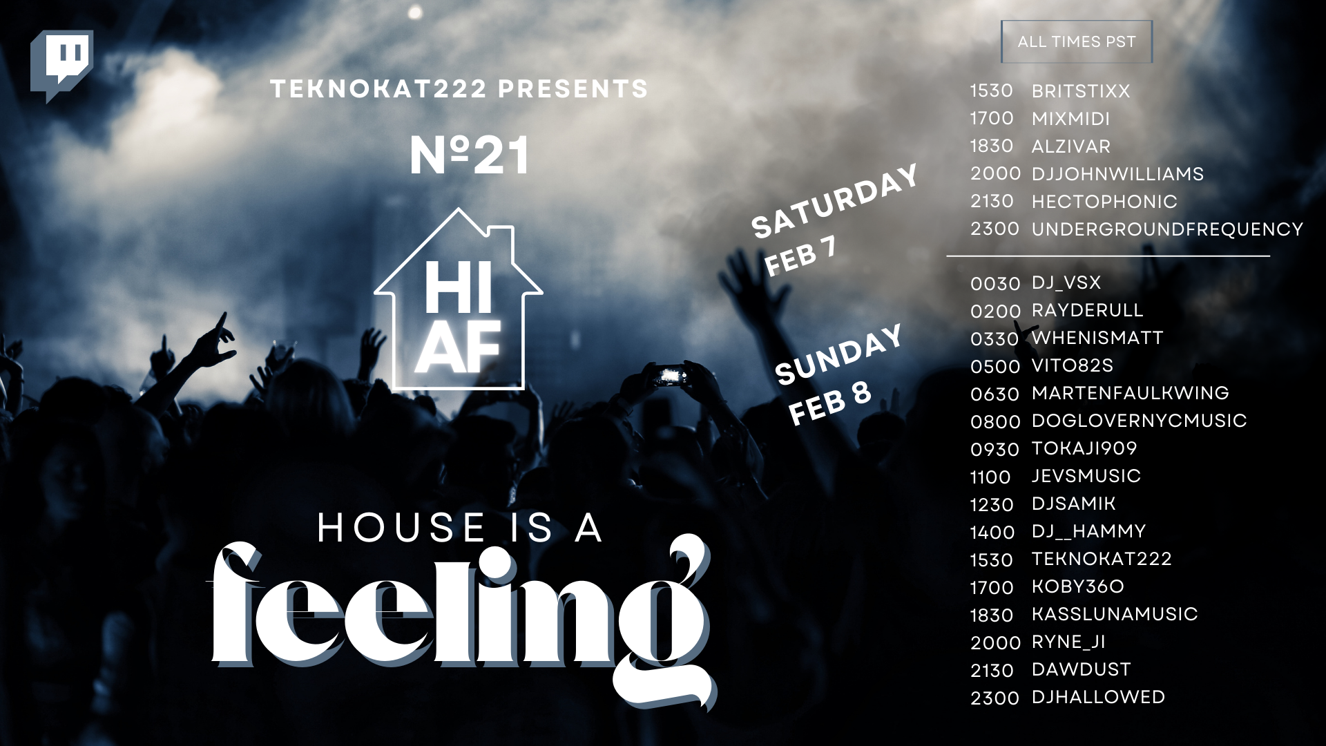 Teaming up with some of the biggest DJs on Twitch, Matt played a Sunday morning session so good it cured several Sunday scaries. House is a feeling lead by the incredible teknokat222 a good freind of the community and the twitch DJ scene!